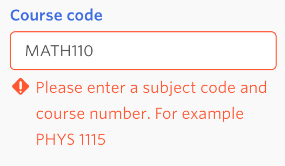 Many students/advisors who searched for a course did not include a space between the word and the number of the code, resulting in an error