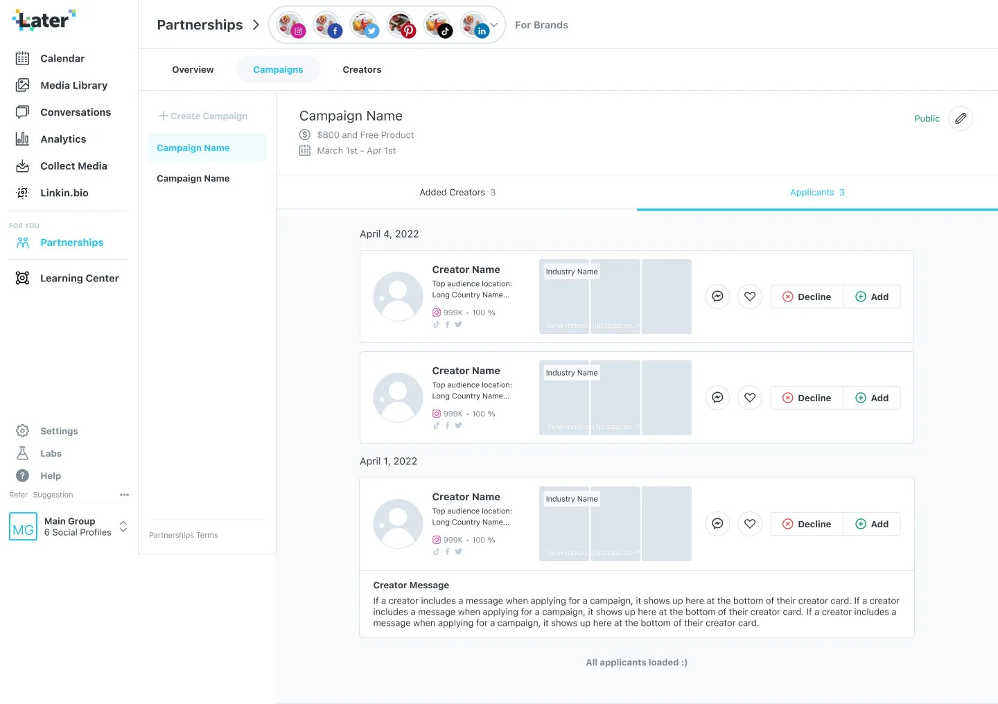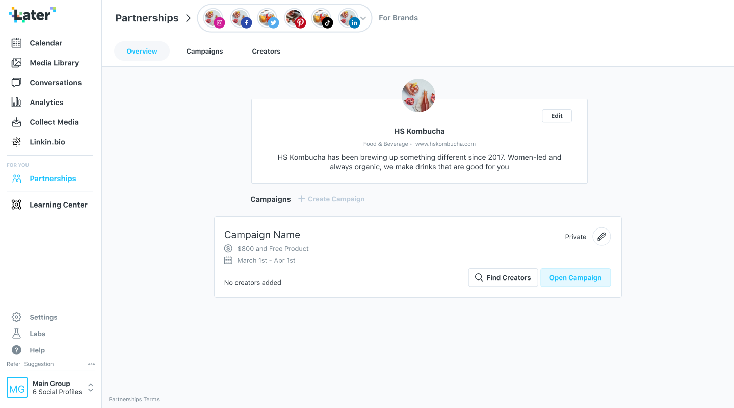 Manage Campaigns: Allow brands to manage their campaigns and the creators in each campaign