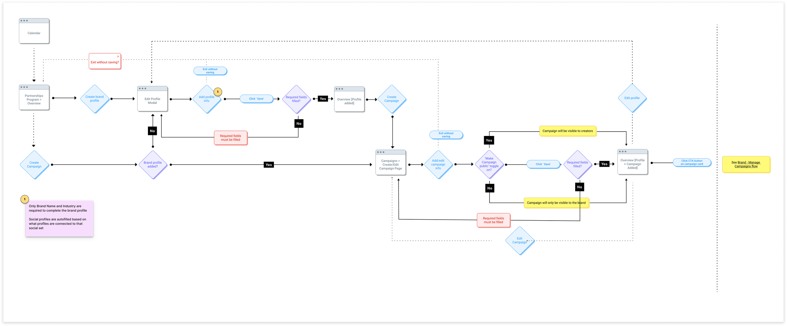 Flow charts were created to map out main user paths and review with the dev team to scope out technical limitations. As we iterated into wireframes and high-fidelity mockups, minor changes were made to the flows, but never caused extensions to our sprint timeline.