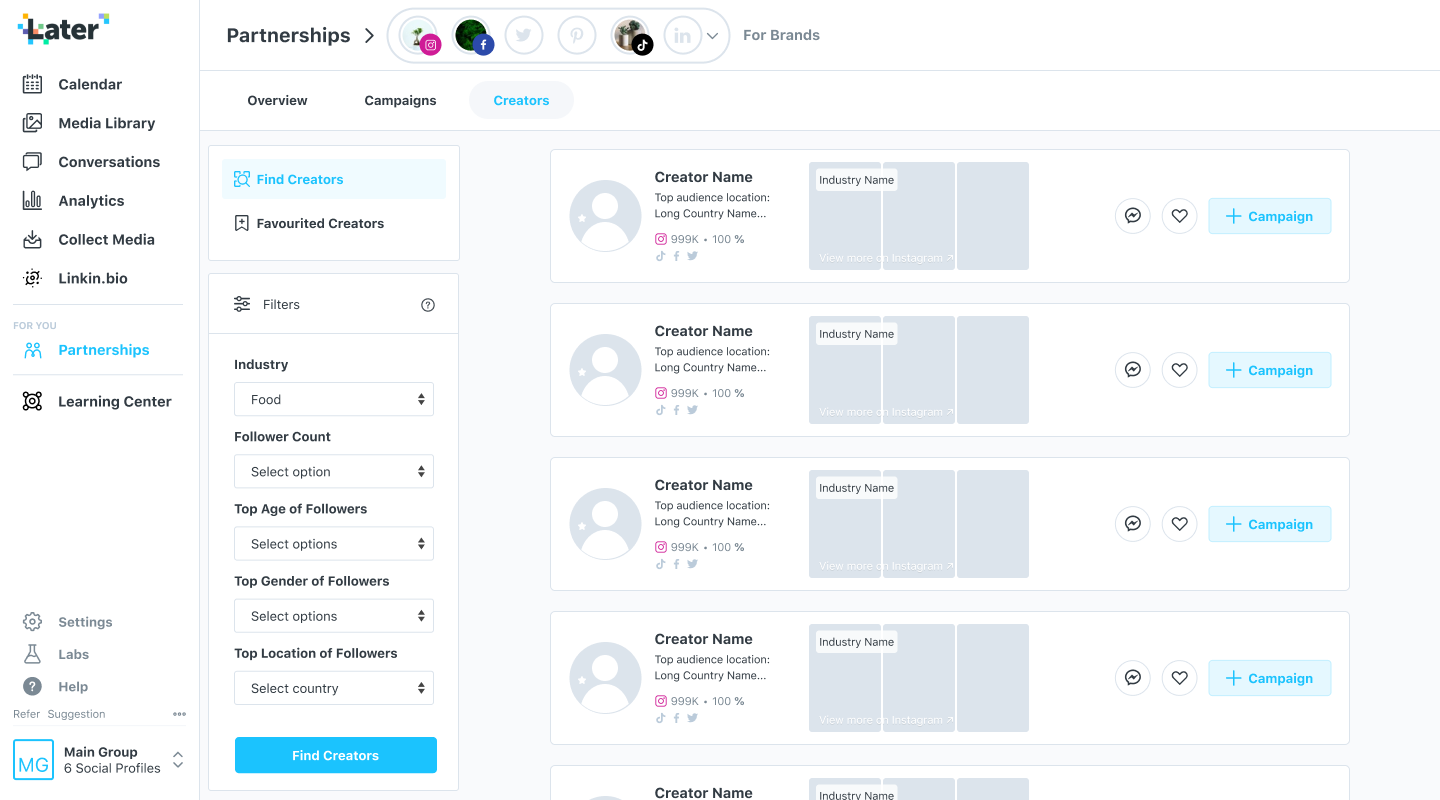 Find Creators: Allow brands to search our creator database to find creators to collaborate with and invite to campaigns