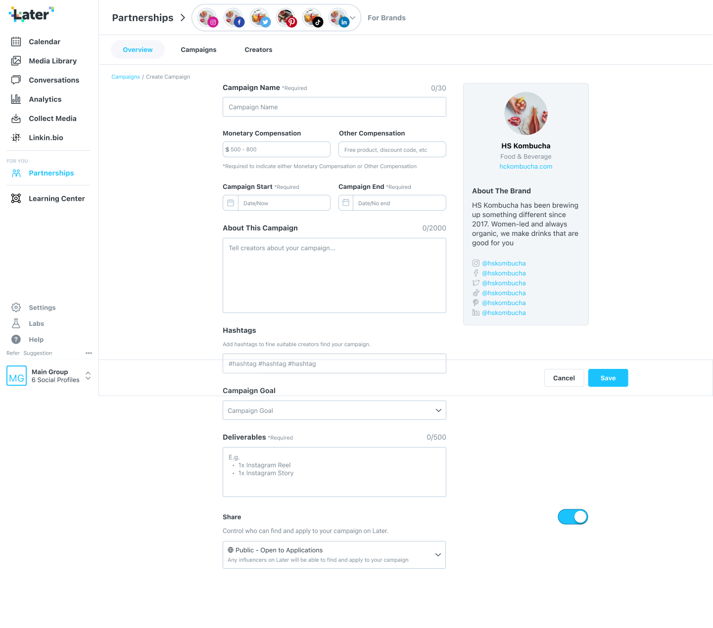 Create + Share Campaigns: Allow brands to post campaigns that creators can apply to