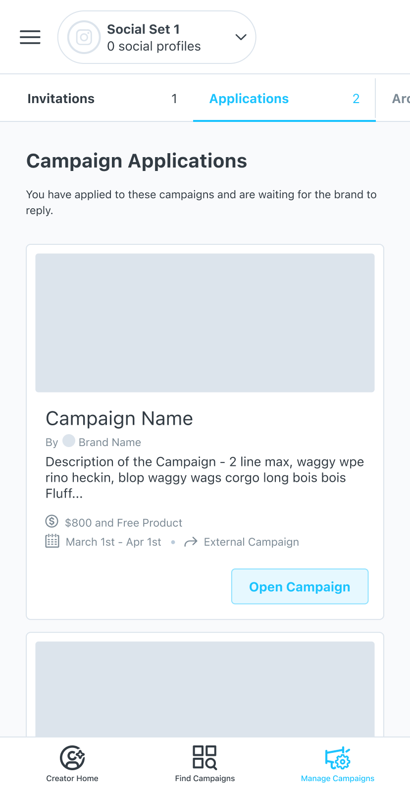 Creators wanted to be able to apply to campaigns, but some platforms only allowed brands to invite them to campaigns